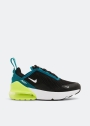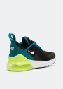 امنحوا صغيركم الراحة المثالية طوال اليوم مع هذا السنيكرز خفيف الوزن من نايك. يستند على وحدة "إير 270" ضخمة ويتميز بجزء علوي منسوج ومسامي، نعل خارجي مطاطي للثبات، شريط سحب لارتداء وخلع الحذاء بسهولة وتوسيد رغوي شفاف.