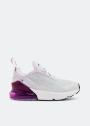 امنحوا فتاتكم الراحة المثالية طوال اليوم مع هذا السنيكرز خفيف الوزن من نايك. يستند على وحدة "إير 270" ضخمة ويتميز بجزء علوي من نسيج مسامي، نعل خارجي مطاطي للثبات، شريط سحب لارتداء وخلع الحذاء بسهولة وتوسيد رغوي شفاف.
