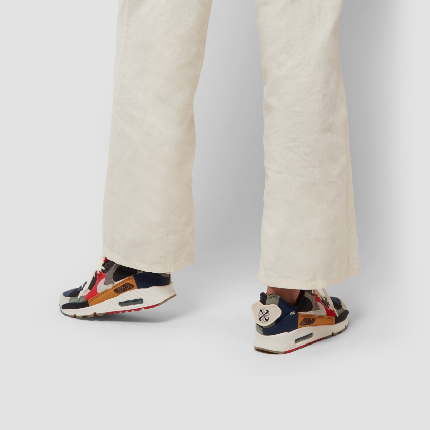 حذاء إير ماكس 90 كيو إس الرياضي يعيد الماضي، إذ يتميز بجزء علوي ملون من النسيج القماشي وأربطة للإغلاق. ويمتاز شعار نايكي ذو اللون المتباين في الخلف برقع فيلكرو قابلة للتبديل ويكتمل بنعل مطاطي بطراز إير ماكس المميز.