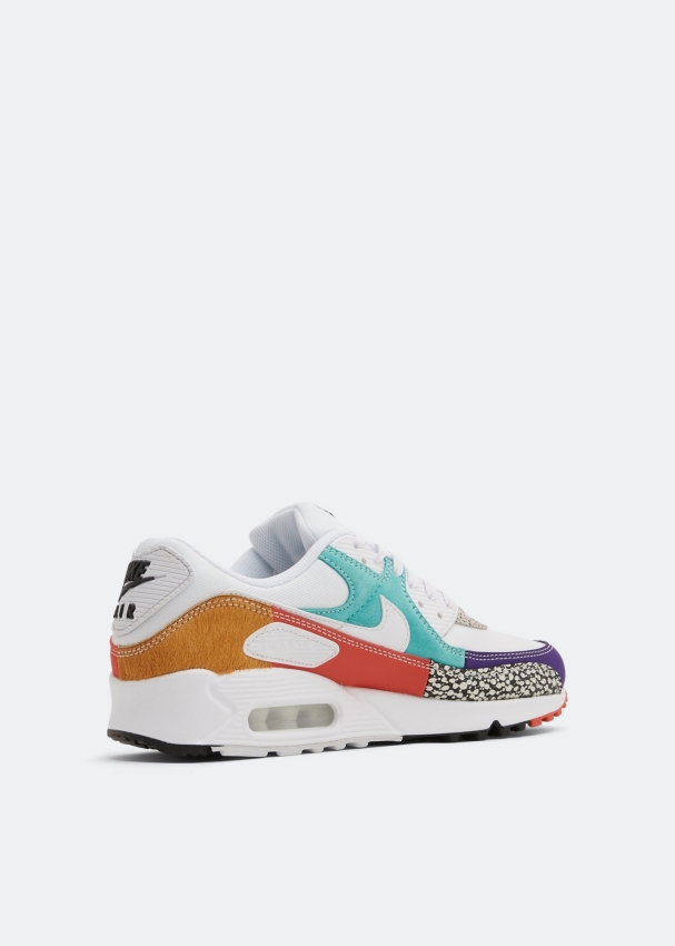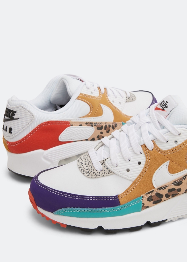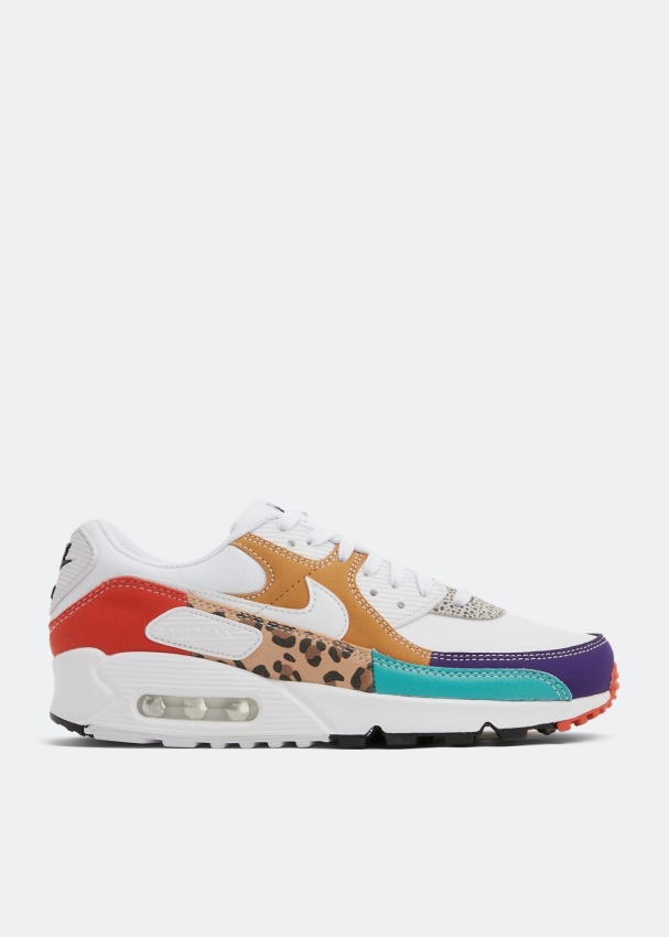 يأتي سنيكرز إير ماكس 90 إس إي من نايك بطبعة حيوانية جريئة. مصمم بنسيج شبكي أبيض مع مزيج من طبعات السفاري على طبقات علوية من طبعة جلد الفهد، الفرو الصناعي ولمسات من الشمواه مع شعار العلامة المميز ونعل خارجي ثلاثي الألوان من المطاط.