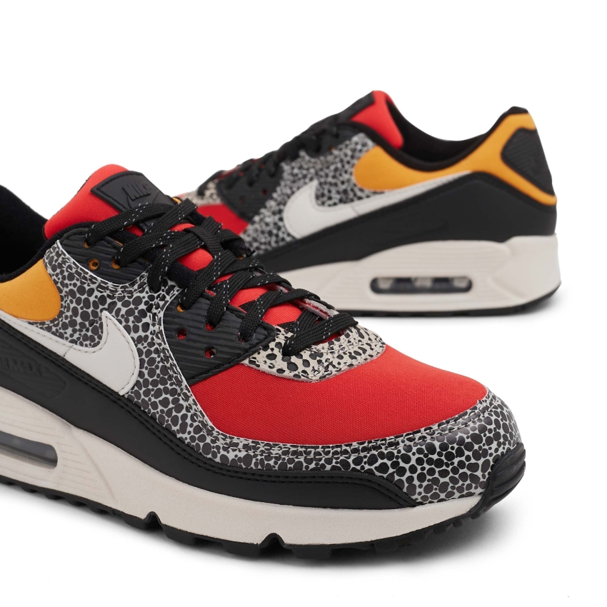 يأتي سنيكرز إير ماكس 90 إس إي سفاري من نايك باللون الأسود والفانتوم والأحمر التشيلي والبولن. ظهر نمط الجلد السميك المطبوع لأول مرة على حذاء نايك إير سفاري في عام 1987، ويأتي على مقدمة القدم ومنتصف القدم مما يسمح للطباعة أن تأخذ مركز الاهتمام. من المؤكد أن هذا الحذاء سيخطف الأنظار وسيكون البداية لكل محادثة!