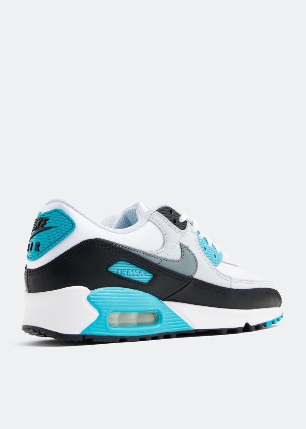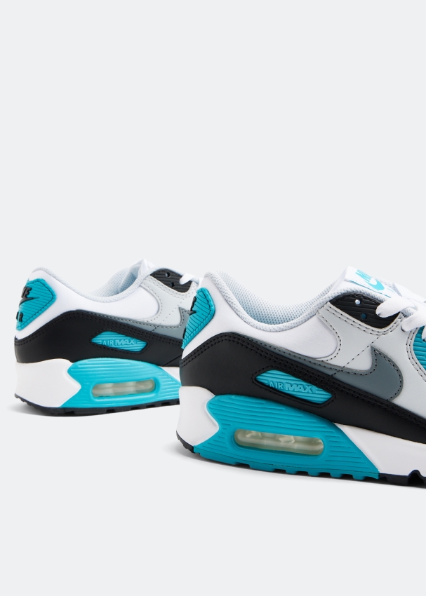 تُقدم نايك سنيكرز إير ماكس 90 بتصميم مستوحى من الفن، الموسيقى والثقافة في التسعينات. يأتي مصنوعاً من مزيج من النسيج الشبكي والجلد بلون "تيل نيبولا" مع شعار العلامة على اللسان، نعل أوسط باللون الأبيض ونعل خارجي مطاطي باللون الأسود.