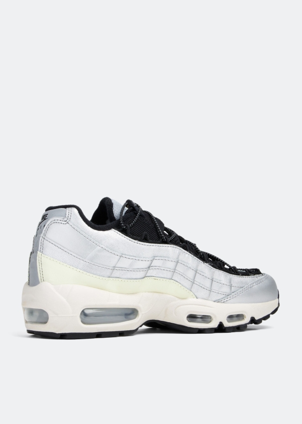 يأتي أحدث إصدار لسنيكرز إير ماكس 95 من نايك بألوان الفضي المعدني، الأسود و"ألباستر". يتميز بجزء علوي من النسيج الشبكي والجلد مع تفاصيل عاكسة من مادة "3 إم"، رباط بقفل ضغط للإغلاق ونعل مطاطي بلونين.