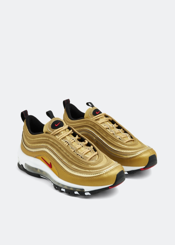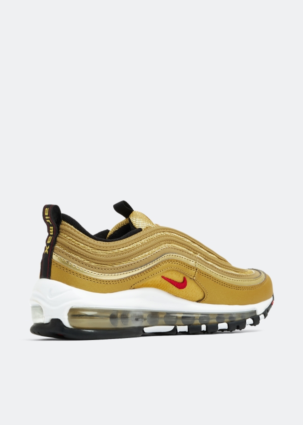 احتفالاً بالذكرى الخامسة والعشرين لنمط إير ماكس 97 الشهير، تُعيد نايك تقديم الحذاء بكتل لونية من الذهبي المعدني، "يونيفيرسيتي ريد"، الأسود والأبيض. يتميز بجزء علوي من نسيج شبكي مع تفاصيل عاكسة، طبقات من الجلد بنمط مموج، وحدة "إير ماكس" وشعار السووش الشهير باللون الأحمر للمسة نابضة بالحياة.